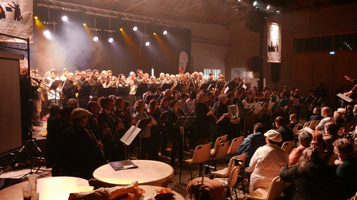 1ère ligne, de gauche à droite : l'Orchestre d'Harmonie & le Coeur de Femmes à Guéret