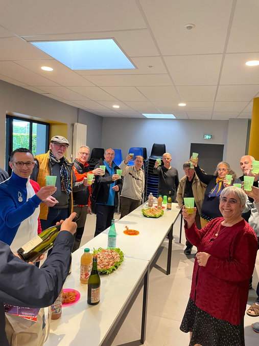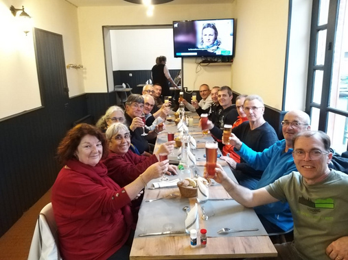 Notre installation était prévue dans la salle du Dojo très confortable. Le Comité de Jumelage nous invite à un petit pot apéritif en présence du maire Sylvain Bourdier et de l’ancien maire Jean-Louis Gaby.