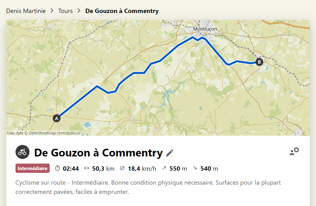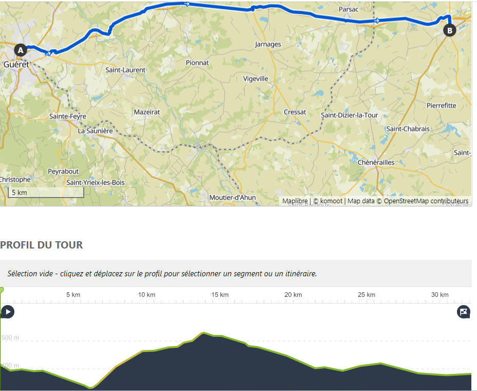 lien pour la demi-étape du samedi 4 mai après midi de Gouzon à Commentry (un peu plus de 50 km)