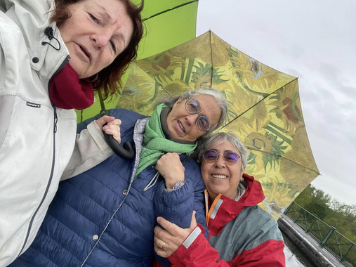 La pluie s’est enfin arrêtée et Paule a rejoint le groupe pour une vraie balade tranquille le long du canal … sauf deux chutes sans gravité dignes d’un vidéo gag.