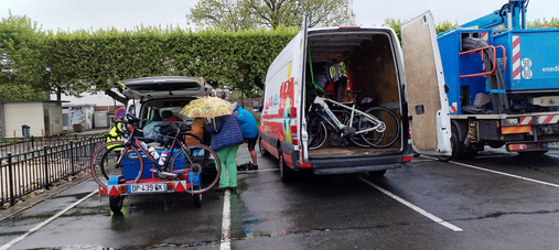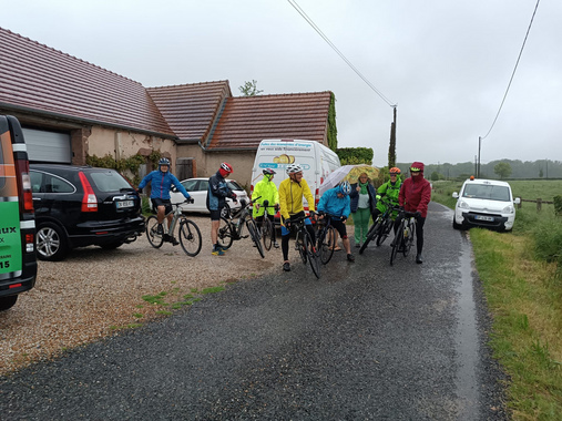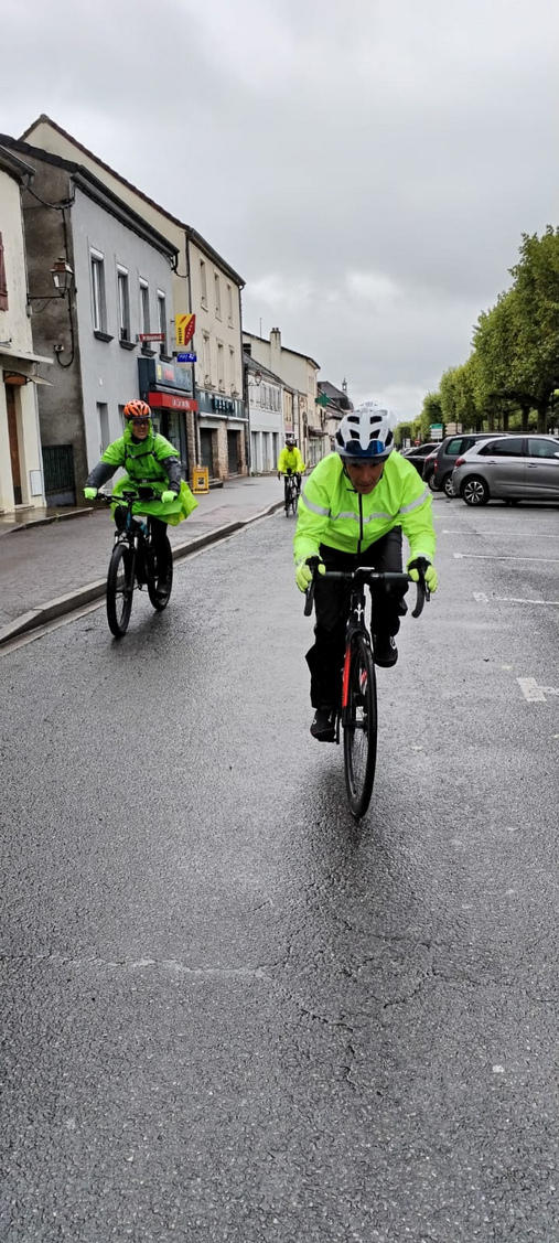 Nous revenons en arrière : le ciel pleurait autant que le premier jour ! Malgré cela, tous les cyclistes se sont remis en selle. Quel courage !