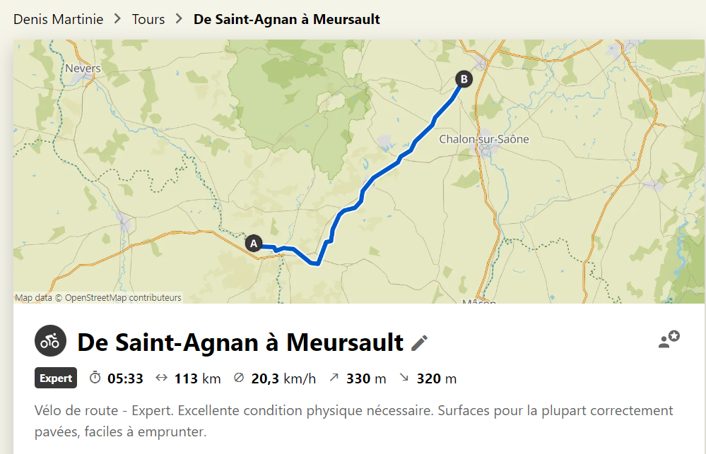VOICI un lien KOMOOT pour l’étape du lundi 6 mai de Saint Agnan à Meursault