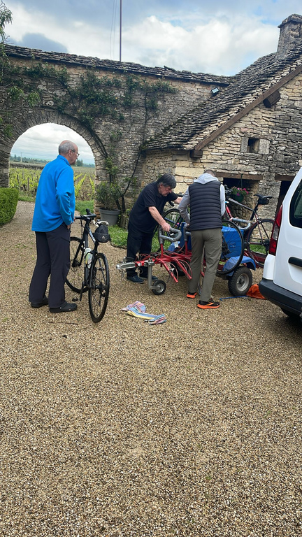 Le camion Picoty fait bien son travail et ne perd pas nos champions. En revanche les deux autres véhicules se sont perdus dans le labyrinthe de Paray Le Monial avant de terminer au fond d’une impasse… Comment s’en sortir avec la remorque qui ne va pas droit quand on recule ?