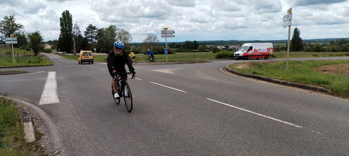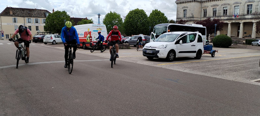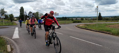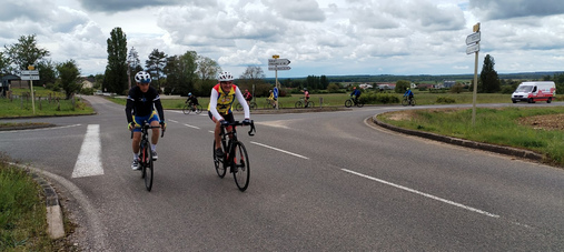 Le relief de la route entre Auxonne et Gy nous a vraiment surpris ici on appelle ça « des montagnes à vaches » et ça coupe les pattes donc bravo à nos champions mention spéciale pour Paule et ses 73kms