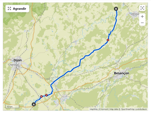 Voici un lien avec l’application KOMOOT pour retrouver la 4ème étape de Pagny le Château à Scey sur Saône (mardi 7 mai)