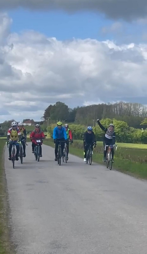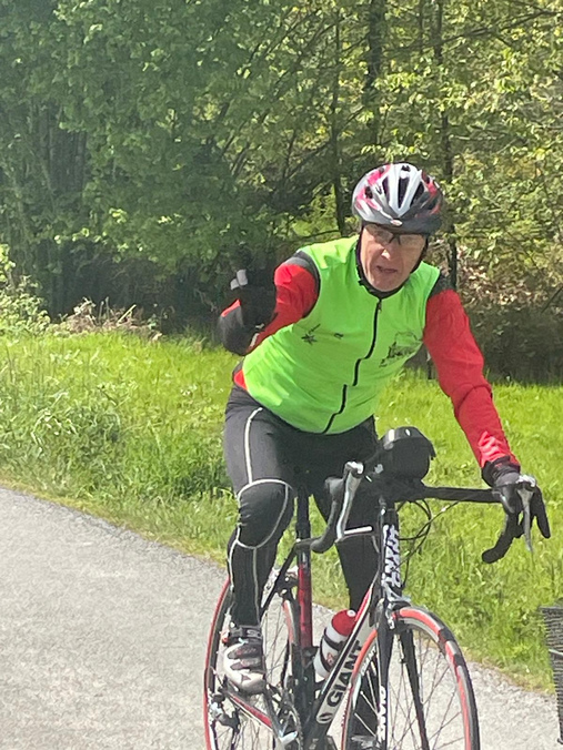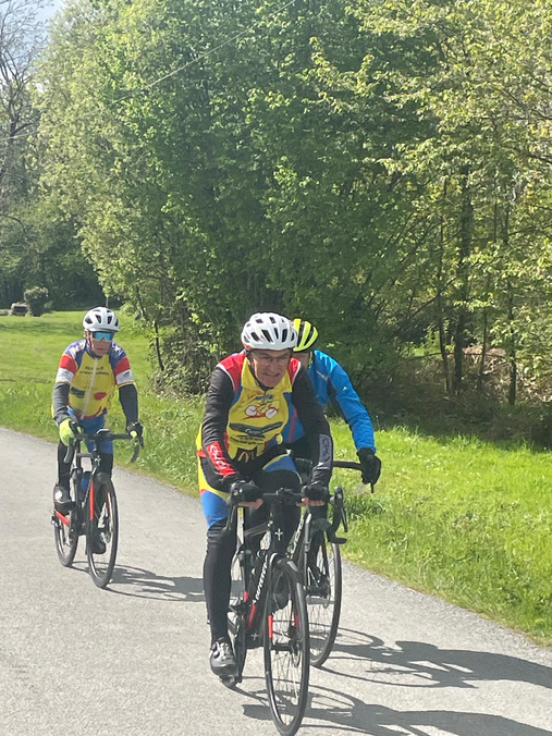 Entrainement du dimanche 28 avril, vent de face, 21km/h, 62 kms, 7 cyclos et leur voiture accompagnatrice
